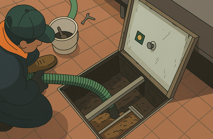 Over time, grease and solids accumulate in the trap, restricting water flow and leading to backups in sinks and floor drains. Regular cleaning ensures proper drainage, reduces plumbing emergencies, and keeps daily operations running without interruption.
